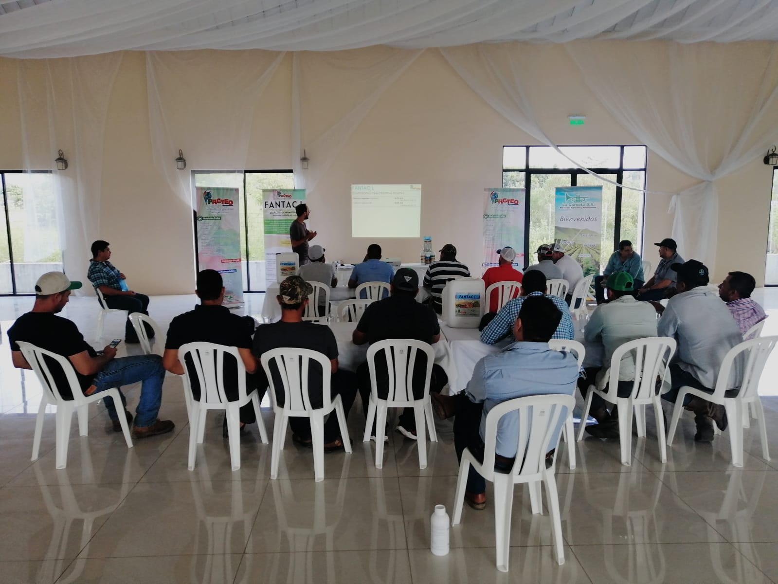 The staff, landed in the capital, met the directive staff of the client and then all together moved to Salamà. Here, in two days, seminars have been held for groups of farmers or society growers of tomato, sweet pepper, green bean, sweet potato, broccoli, peas, and watermelon. Among the products of the line currently sold in the area, PROTEO started the introduction of FANTAC L.